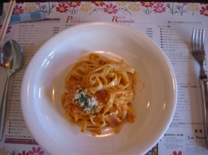 赤平キャンプ二日目のお昼に、滝川のイタリアンレストラン、ラ・ペコラに行ってきました。「羊を丸ごと食べ尽くす」で知られ、是非行ってみたいお店でした。今回は「地場産コース」と「生パスタランチ」を注文しました。