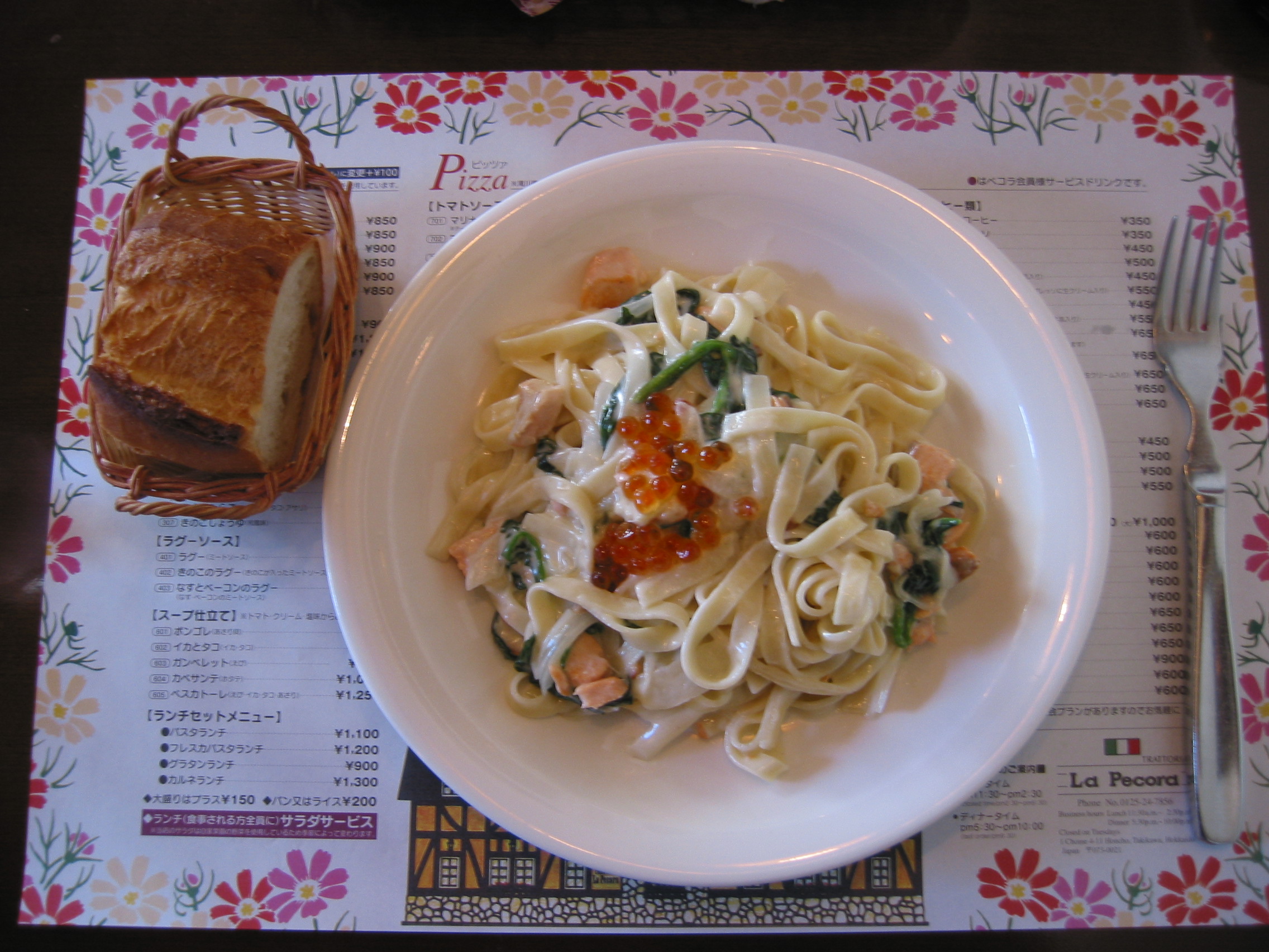 次は季節のお勧めメニューから、秋鮭とほうれん草のクリームパスタセットです。
