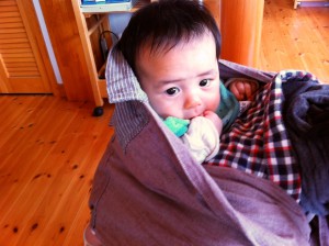 百日記念の初おんぶ 投稿日時: 2012年4月15日 投稿者: Yamada@Hills 4月15日。岳 生後百日記念日です! そして初のおんぶ! でも、気に入らないのか泣き叫んでました。 泣き止んでも目には未だ涙が。(^_^;)