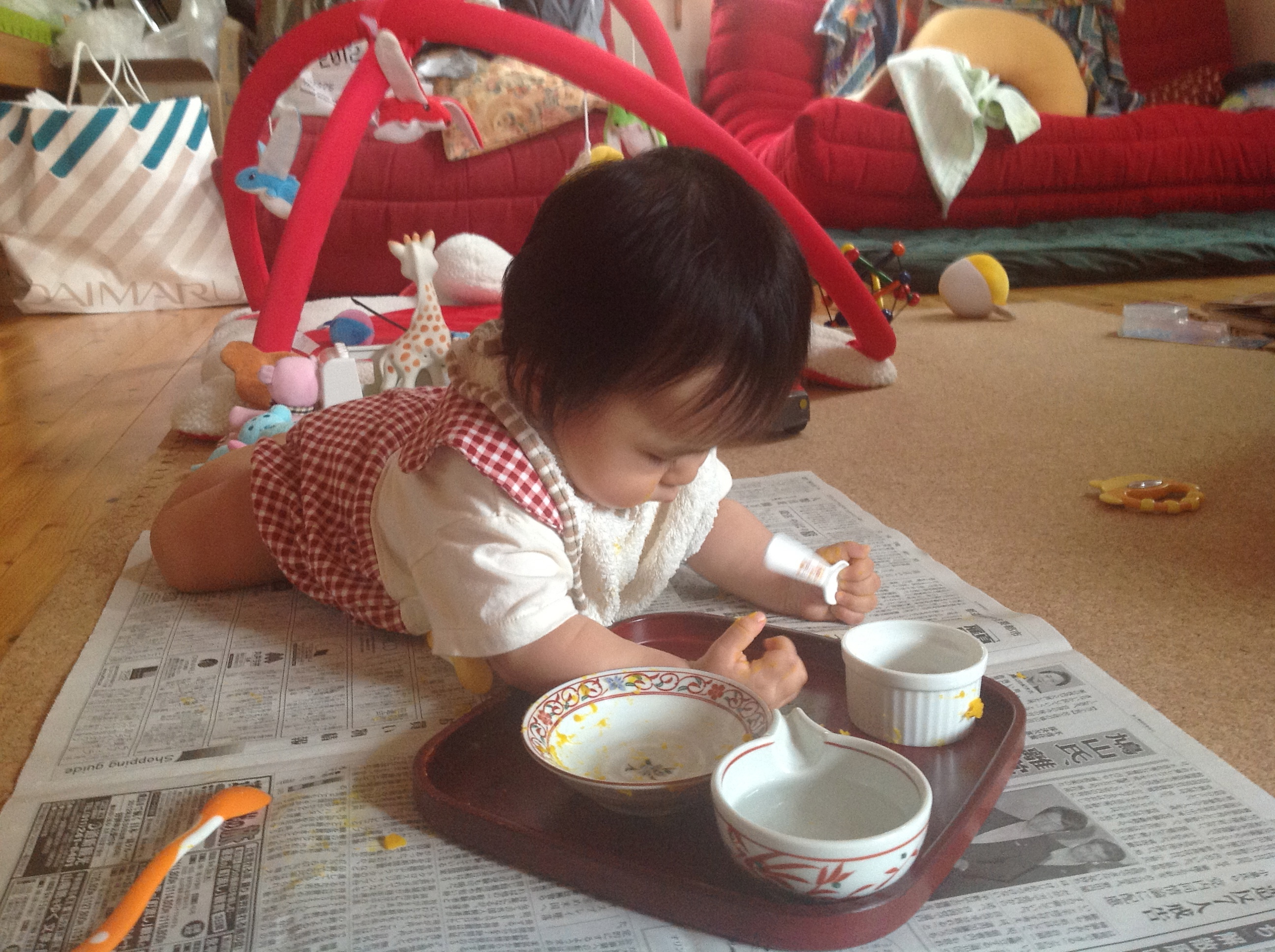 腹ばい離乳食 投稿日時: 2012年8月15日 投稿者: Yamada@Hills いくちゃんと二人の時の岳は、座って離乳食を食べさせて貰うのが我慢できず、自分の手で食べたがるそうです。 あ〜! そして最後にはぶちまけ。