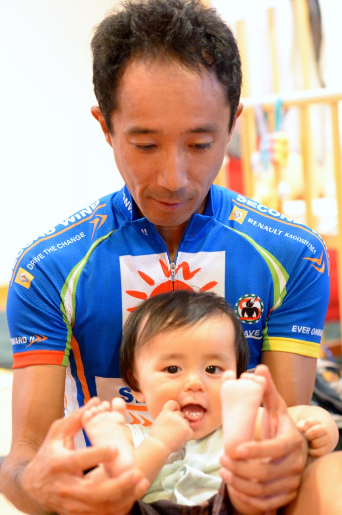 和田さんが来てくれました 投稿日時: 2012年9月18日 投稿者: Yamada@Hills ツール・ド・北海道2012市民ロードレースに出場するため、鹿児島から来ていた和田さんが寄ってくれました。 例によって、じっと顔を確認する岳。 未だ、なんか怪訝そうだな〜。腕の毛を引っ張っているし。(^^; 次第に仲良く遊び始めましたよ! お祝いまで頂き、ありがとうございました!今度は是非みどりさんと一緒に来てね!