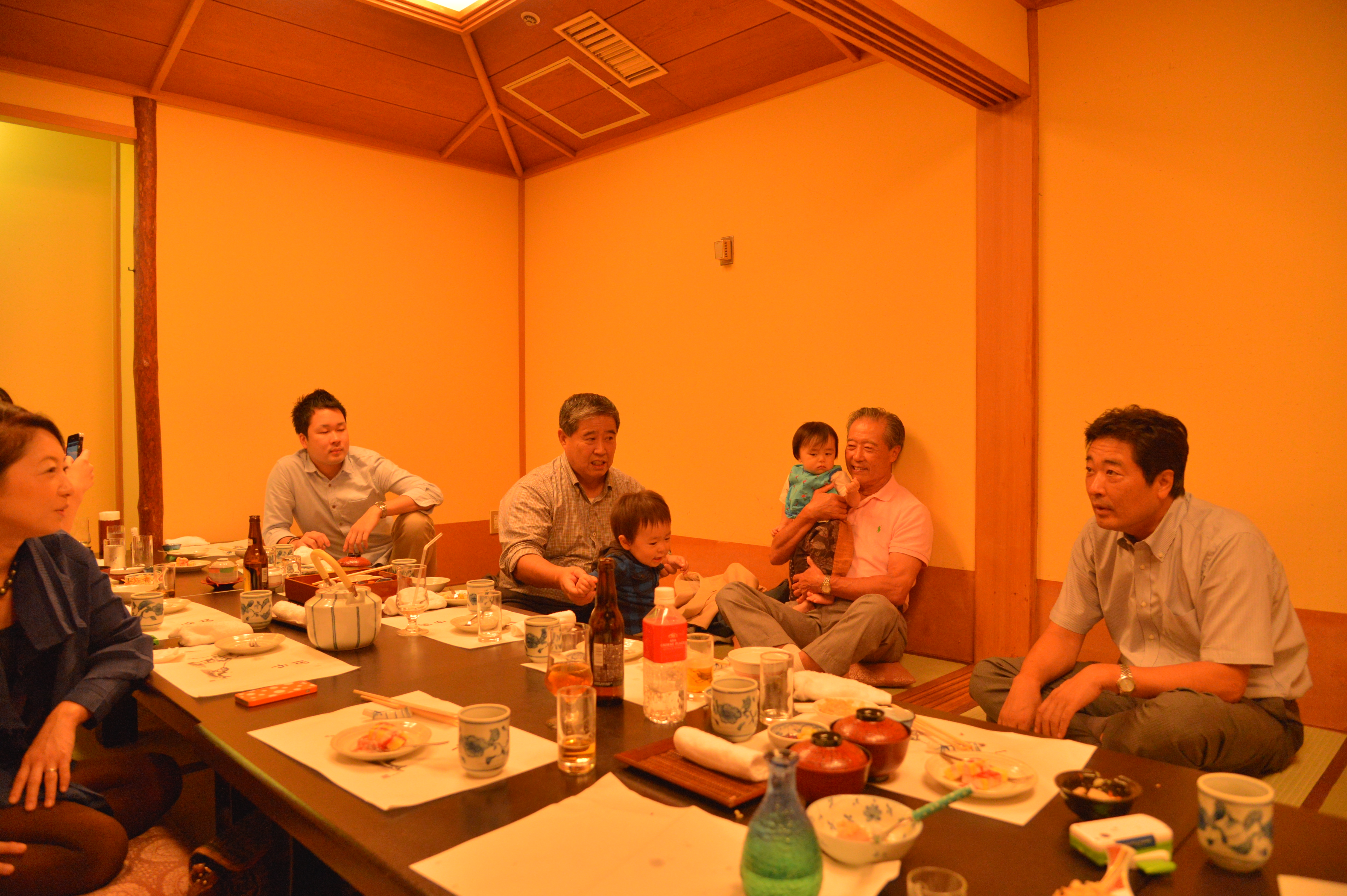 10月15日。総勢15名が集まった岳のお披露目会。幸太朗のお披露目でもありましたし、また、和夫の長女、かおりちゃんの婚約報告でも有りました。久しぶりに会う親戚同士の楽しい会合は予定の2時間を上回り、3時間でお開きとなりました。で、大失敗!集合写真を撮り忘れた〜!