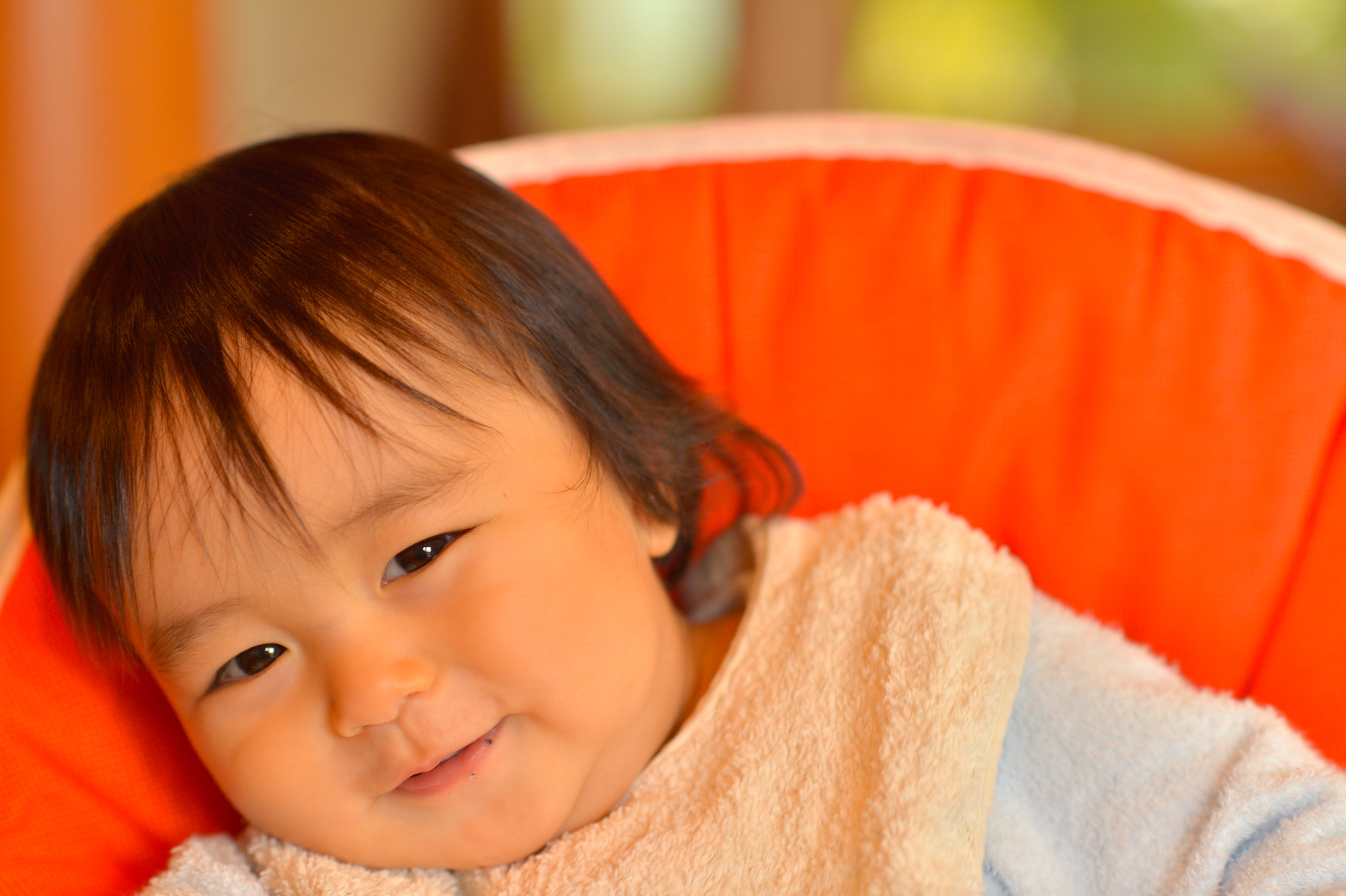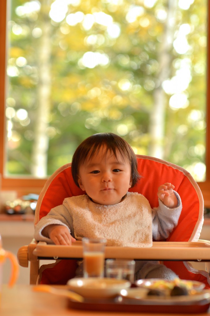 と言うことで、今までは俺の膝の上で食事をしていたのを、自分の椅子に座って食べることにしました。椅子はいくいくが前々から目を付けていたボーネルンドで昨日購入。今日の朝食が初です!