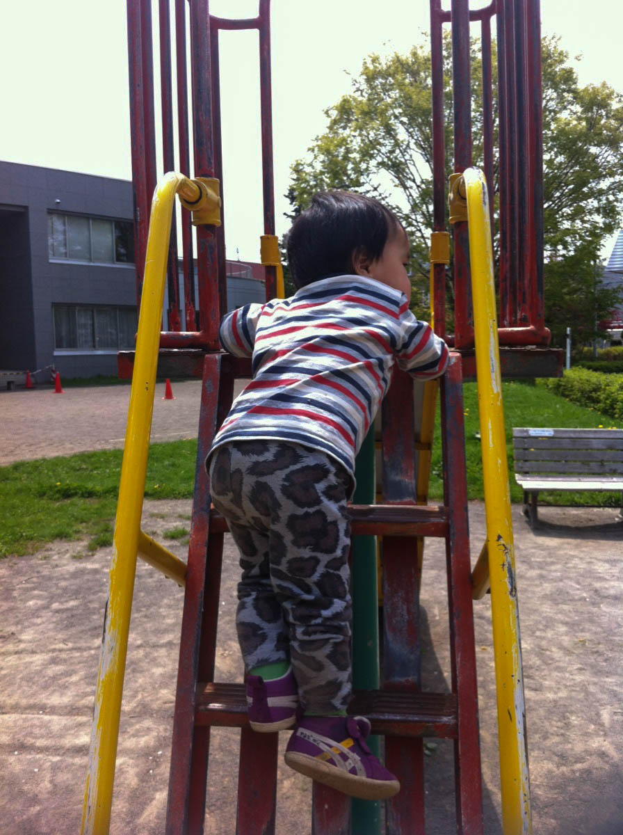 滑り台が大のお気に入りです。一人で登れます!
