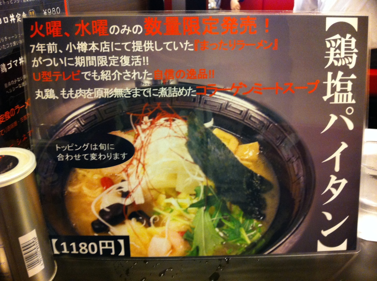 札幌ステラプレイス店では、火曜日と水曜日のみ。小樽では平日全て提供することを計画中だそうです。