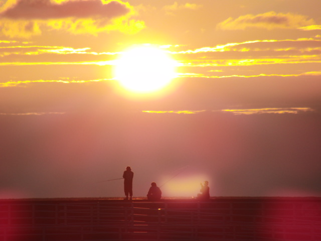 留萌は夕日が綺麗との評判通り。防波堤では夕日を浴びながら釣りを楽しむ人々が多く居ました。