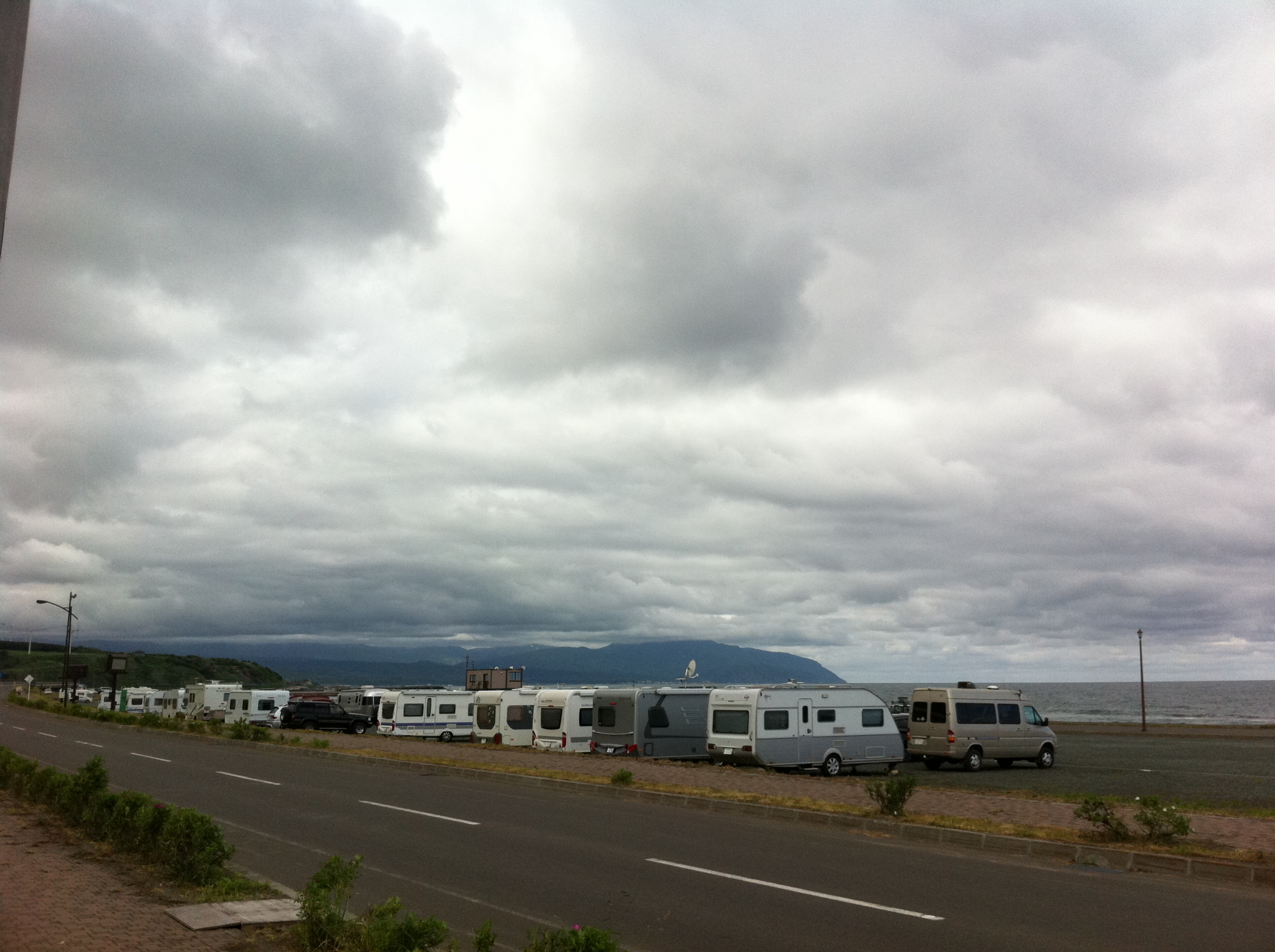 その夜は早く休んで、翌日に備えよう!と言っていたのですが、KIP のドアをノックする音が。なんと久方ぶりの川村さんじゃないですか!キャンピングカーにはまるきっかけとなった方です!でもトレでのニセコは危ないから止 めろと止められていた方でもあります。(^^) 積もり積もった話で盛り上がり、「えぞの誉」が一本空いてしまいました!