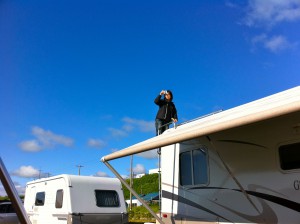 今年も初日は雨が降り、二日目は晴れる、と言ういつも通りのライズキャンプでした。(^^; 昨年同様KIPは1台のみの参加。Hobbyに力を入れているのは分かるけど、KIPも頑張ってほしいな〜。と思っていたら、着いてびっくり!ヘッドの兄弟車が有るじゃないですか!赤い212DでBurstner F390TKを牽く富良野のKさん。いや〜、嬉しいですね〜!
