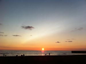 今日の夕日は雲に邪魔されることなく、海に沈む様子を見ることが出来ました。