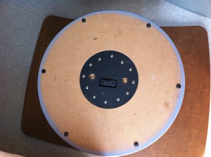 やはり、テーブルの台座を止める木ねじがあまり効いていなかったらしく、オリジナルのねじより長目のねじを、本数も6本から12本にしてしっかりと止め、割れた柱のプラスチックカバーは接着剤で修理。これで安心。(^^)