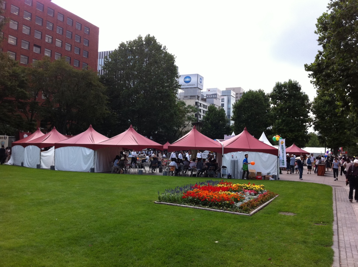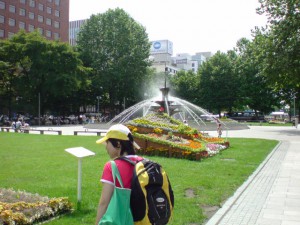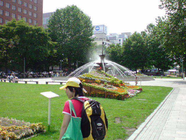大通公園ではビヤガーデンが始まっています。行きたいな〜。(^^;) でも、のんびりと水場で岳を遊ばせたいので、午後から北大に行ってみました。