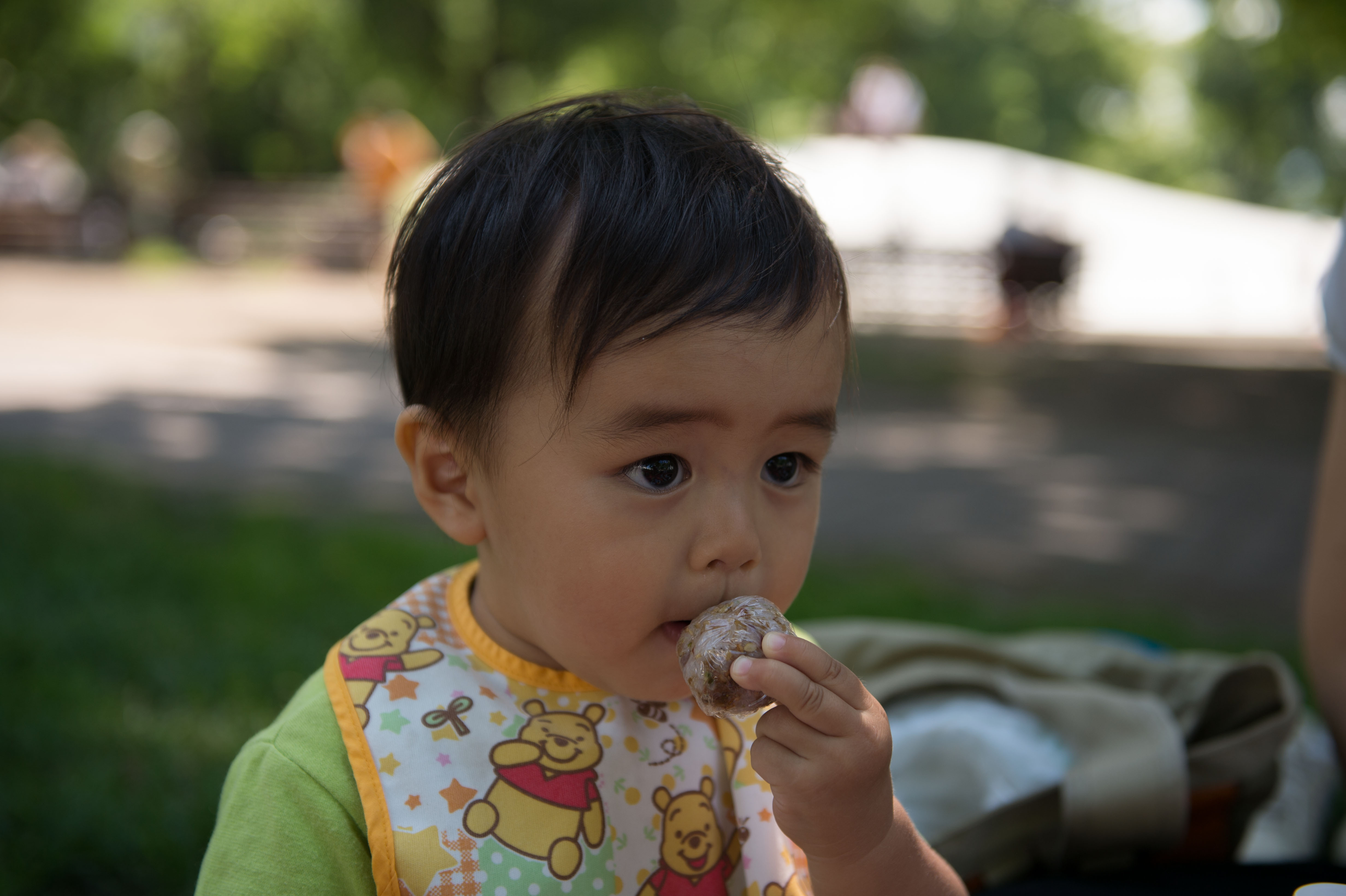 ランチは3人で一緒です。岳用特製おにぎりはまだラップを剥がしていないのに!(^^)