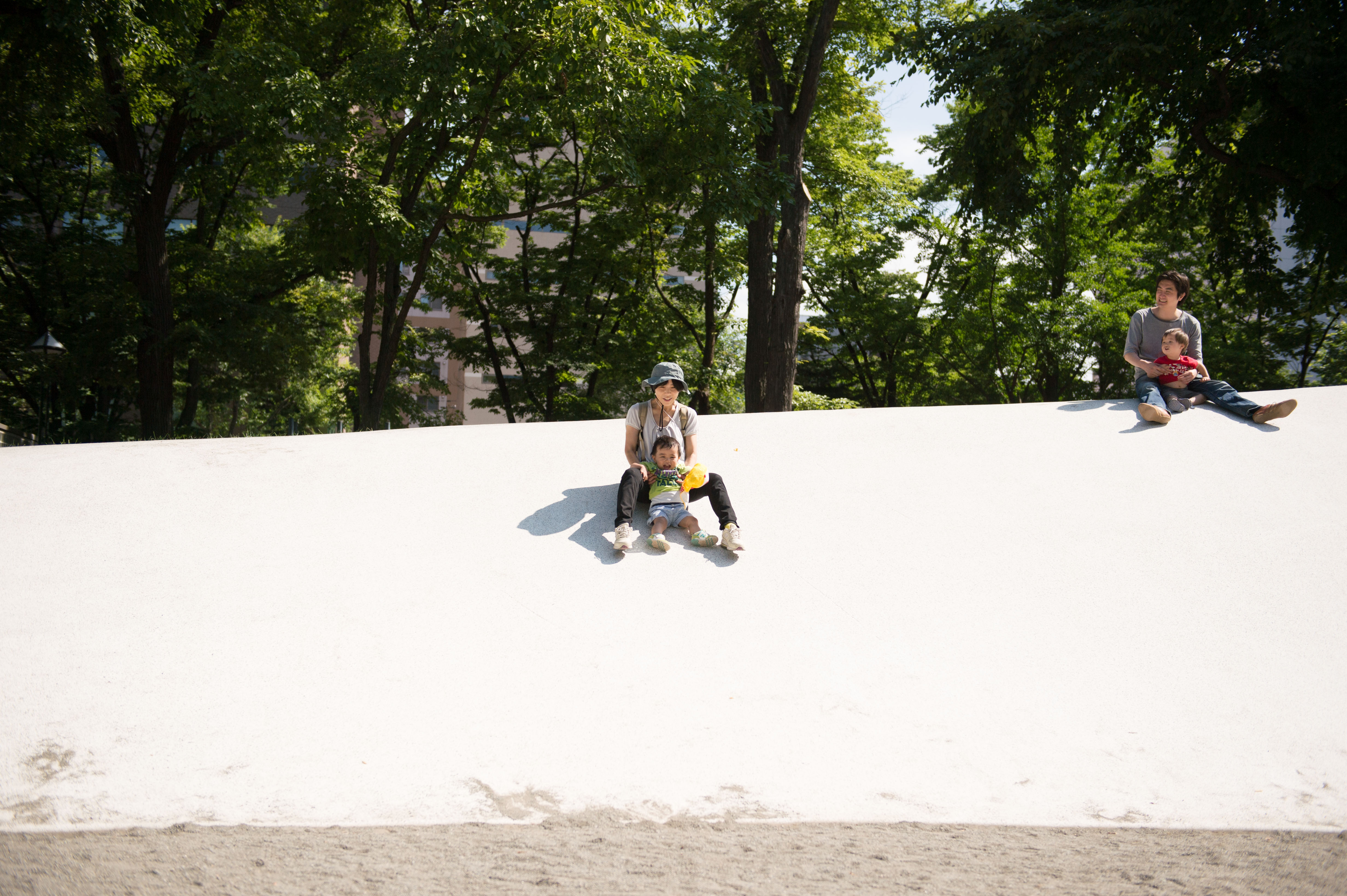 早く乾杯したい一心で岳を急かしますが、途中9丁目の大滑り台で捕まってしまって、何度も「滑ると!」。そんな二人を置いて郁ちゃんは先に席取っておくね~!と行ってしまうし。(^^;