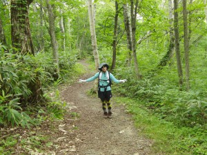 でも予報通り9月25日(土) には風が収まった。金曜日の夜ヒルズを出発し、東大雪荘前のP泊。ここまでに8kmのダート。翌朝、短縮登山口まで移動し、出発。この間も8kmのダー ト。昨年ここにトレを牽いて行けるかとの質問をTMLに投げたところ、やめろと。確かに東大雪荘から短縮登山口までは牽いて行く気にはなれなかった。ただ し、東大雪荘までなら行ってもいいかな?ここまでのダートは観光バスも擦れ違えます。がそれなりに揺られますよ!