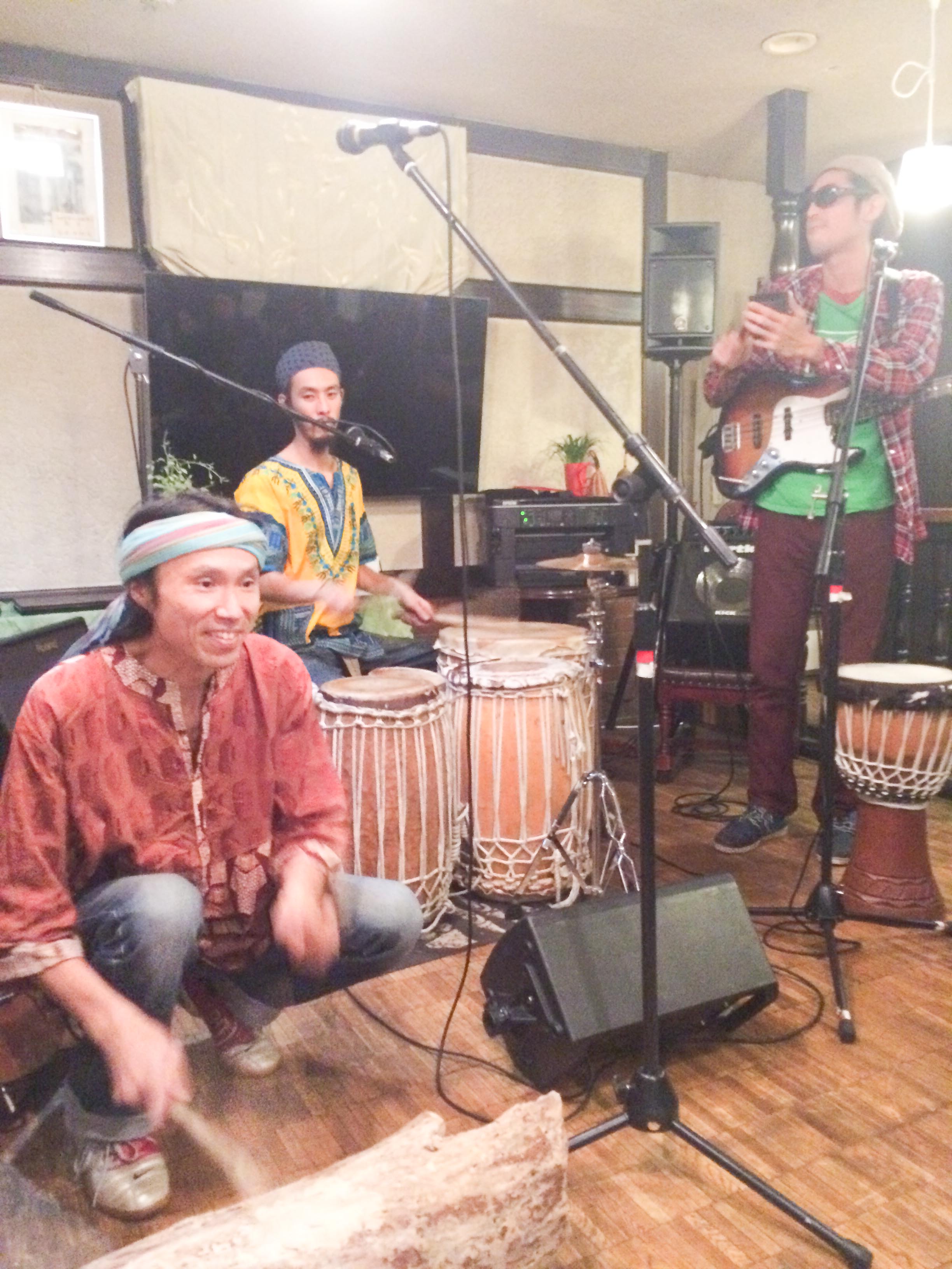 アフリカンパーカッションを主体としたギターとのユニット。今日はベースがゲスト参加です。流木を叩いているリーダーの木村さん、当別町在住だというのも親近感が泡きましたね!