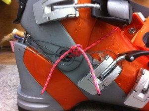 で私はと言うと、ブーツを履こうとしたらトラブル発見!ブーツシェルとアッパーシェルを繋ぐピンが抜け落ちてました!