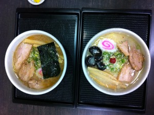 いくは、こってり塩、私は、こってり醤油で、二人とも麺バリバリ。