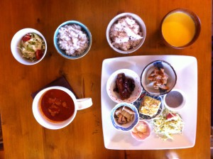 た、美瑛の花七曜でランチです。ヘルシー料理で優しい味付けでした。ドックランが広くて良さそうでしたよ!