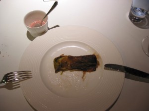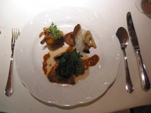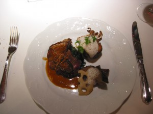 メインデッシュは肉と魚を一品ずつ取ることに。こちらは鴨肉です。