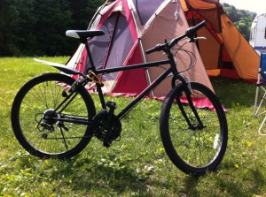 着く直前の坂道でチャリツーリングしている人が居て、大変だなぁと思っていたのですが、着いてしばらくすると、その方がやってきました!