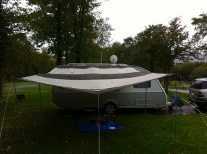 天候が今一でしたが、トレーラーのスクリーンレールを使用したタープのデビューとしては好都合!ケダーベルトをタープの一辺に縫い付けたのもです。しかし、気温5度では外で食事もままならず。(^^ゞ