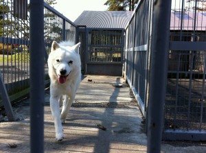 ヒグマの檻の前には北海道犬。ここには、携帯CMで有名になったお父さん犬「カイ」、の長男「空」がいます。やはり似てますね。飼うのは難しいのかな〜。出来れば欲しい。(^^)