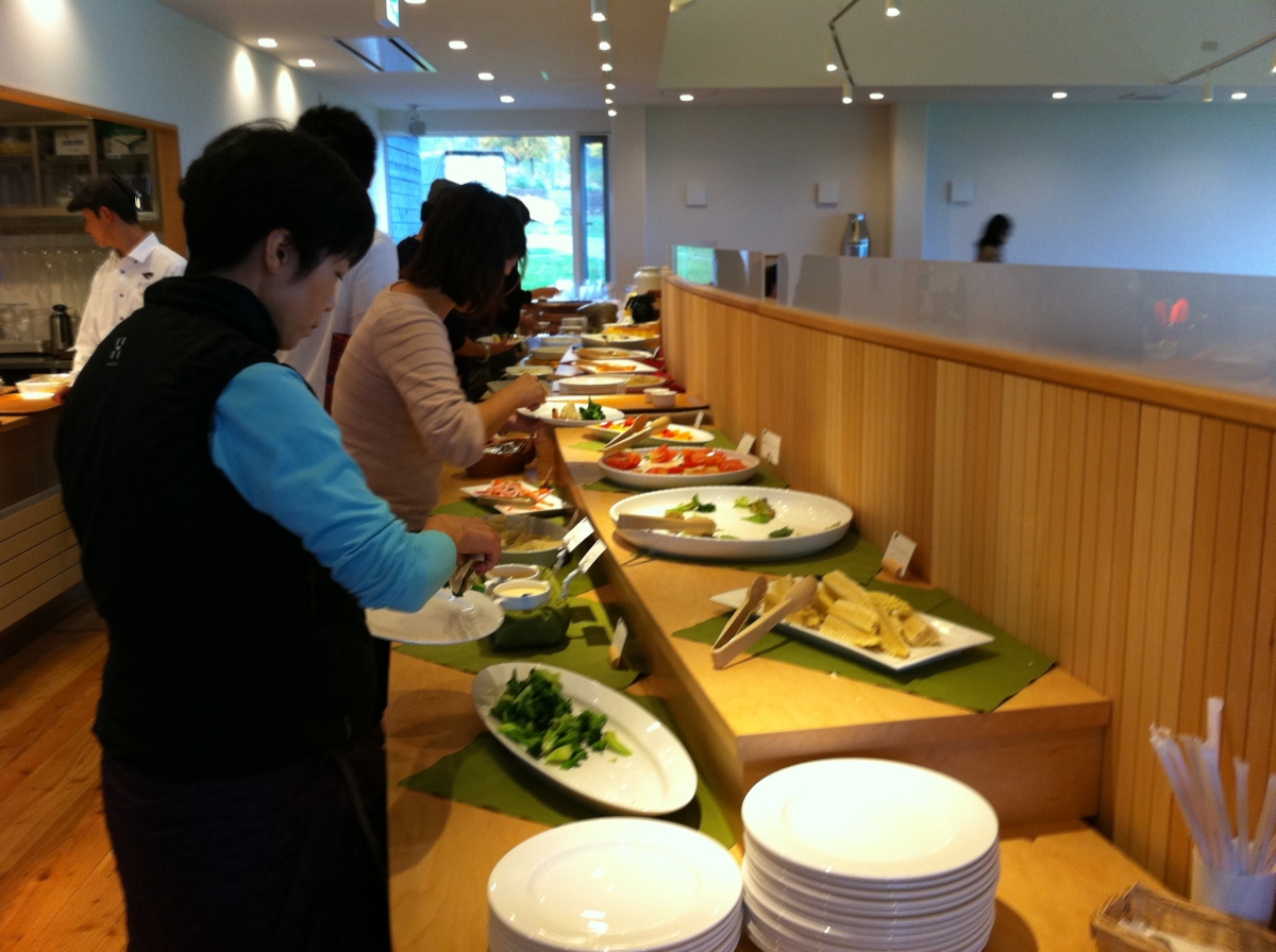 ここは、ニセコで収穫された野菜類が食べ放題のビュッフェスタイルです。