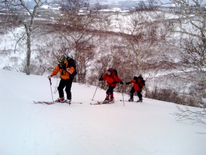 合宿途中の1/24は中山峠で北海度雪崩研究会の講習会でした。そこでの講習を受け、1/28の午前中は名雪さん、内山さんとビーコン探索訓練を行いましたが、やはり積み重ねることにより、探索時間が短くなります。トレーニングは必須ですね。