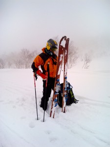 次は、お気に入りのScottyBob。 テールエッジがめくれ上がってしまった!何とか修理してもらったけど、接着剤が完全に固まるまで丸1日。その間レンタルで滑りましたが、シールが合うはず もなくシール登高はあきらめ。北斜がガイドツアー客が多く荒れていたのと、雪が悪かったので、ニトヌプリを予定していたのだけど・・・
