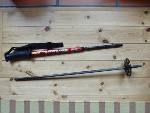 突っ張りポール。ウエア、ブーツ、ヘルメット、等の濡れ物の置き場所に苦労しましたが、トイレを物干し場にすることにしました。