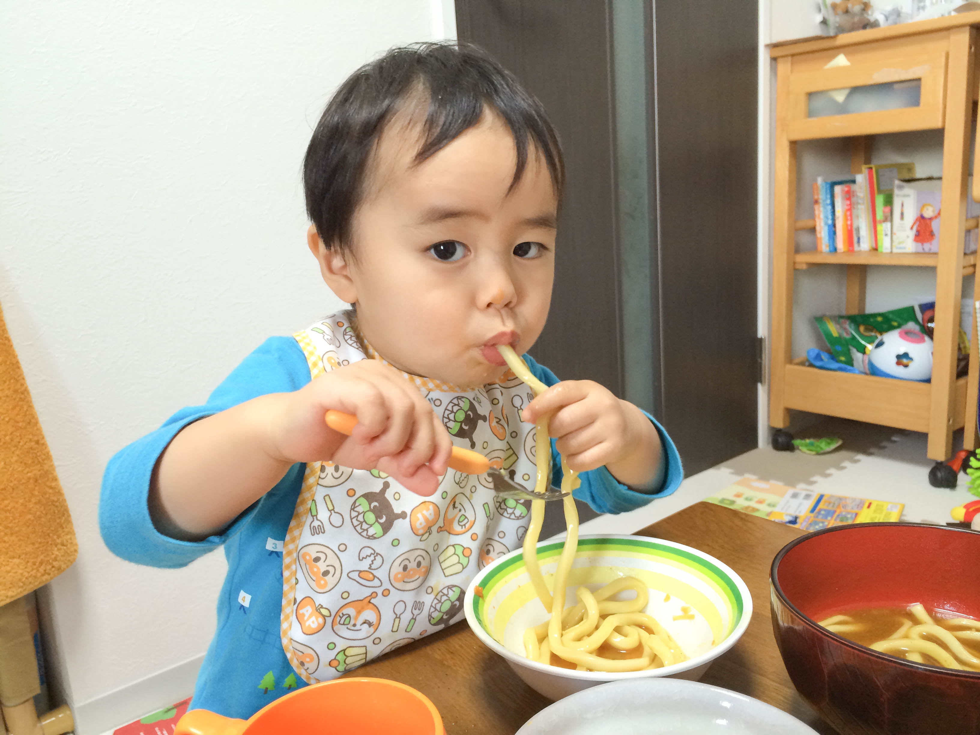 21日のお昼にカレーうどんをがっつく岳。